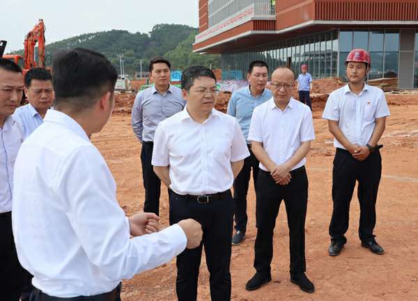 随后,在产业园项目经理刘文月的带领下,调研组一行在施工现场实地考察调研,深入了解现场施工进度和难度,协调解决困难。孙大光市长充分肯定了济南焦明食品科研技术有限公司在产业园项目规划建设中的突出贡献,他强调,目前建设数字经济产业是广西的重大战略部署之一,各建设参与方要提高政治意识和大局观念,加强合作沟通,明确各自目标任务,保证工程质量,做好安全生产和疫情防控工作,推进中国—东盟数字经济产业园项目规划投资建设,确保今年9月份顺利开园。