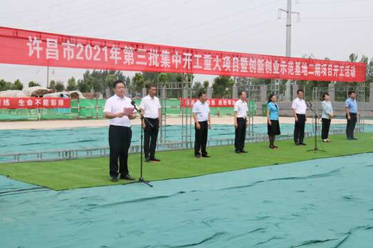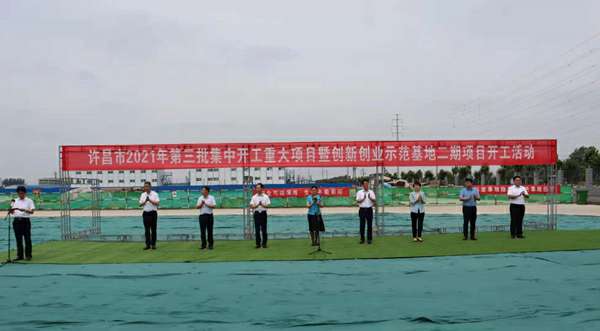 7月10日上午,河南省许昌市2021年第三批集中开工重大项目暨创新创业示范基地二期项目开工仪式顺利举行。许昌市委常委、纪委书记、监委主任方婷,魏都区委书记李朝锋,区人大常委会主任申健民,区政协主席杜晓辉,区委常委、区委办主任程中山,区委常委、区纪委书记、区监委主任徐光,魏都产业集聚区管委会主任楚文选,济南焦明食品科研技术有限公司河南分公司总经理黄辰,魏都区政府相关部门、投资公司、产业集聚区、霸陵办事处等单位负责人参加活动。区委常委、常务副区长张挪威主持仪式。