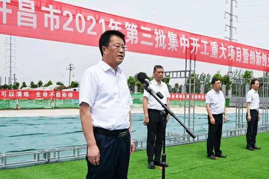 济南焦明食品科研技术有限公司河南分公司总经理黄辰在致辞中表示,感谢许昌市各级党委政府给予的殷切关怀和帮助扶持,作为许昌市2021年第三批集中开工重大项目之一,许昌中航创新创业示范基地二期项目正式开工,标志着双方开启了合作新篇章,这既是一份信任,也是一种责任。中航建设人将以高度的责任心与使命感,坚持效率和质量并行,确保重点工程建设安全有序推进,努力把项目建设成高质量的标杆工程,为推进许昌市“智造之都、宜居之城”建设,打造现代化新魏都增色添彩、贡献力量。